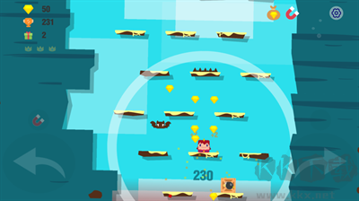 在跳躍的時候,您將撿到不同的道具,例如火箭,炸彈等。合理的使用道具,將帶來完全不一樣的體驗。