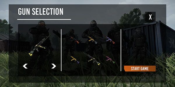 3、然后開始選擇你的槍械和對應(yīng)的皮膚,選擇完成后點(diǎn)擊右下角的START GAME。