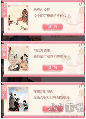 猜拳,投壺跟射燈燈,其中猜拳是無(wú)法預(yù)估的,小編曾經(jīng)就試過(guò)全部輸。投壺跟射燈燈是看你反應(yīng)的,其中投壺分為三個(gè)壺,兩個(gè)大的一個(gè)小的,大的插進(jìn)去十分,小的二十分,所以我們假如選盡量選小的瓶子,這樣你假如全中的話就有60分。還有就是射燈燈,射燈對(duì)反應(yīng)迅速的人沒(méi)有壓力,假如全都點(diǎn)到了,也差不多有50分,但是我們得注意別點(diǎn)到有鞭炮的燈,還有一些兩分的燈也盡量能把握住。所以綜合所述,假如對(duì)自己有信心的,可以選擇投壺,假如選擇保險(xiǎn)的就選擇點(diǎn)天燈,當(dāng)然你假如想跟系統(tǒng)玩鬧的,可以選擇猜拳。