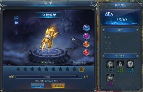 1、腕甲進(jìn)階:使用腕甲碎片可進(jìn)行升級(jí),達(dá)到一定星級(jí)時(shí),腕甲會(huì)進(jìn)階,進(jìn)階后可更換更多外觀,并且?guī)?lái)屬性提升。