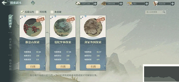 第二手,高手挑戰(zhàn)、海市蜃樓都可以獲取經(jīng)驗(yàn),還能分別刷裝備及器意等