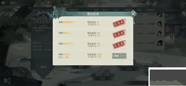 關(guān)于幫會(huì)任務(wù)問(wèn)題:不花元寶的情況,幫會(huì)經(jīng)驗(yàn)最多達(dá)到55,前三個(gè)需求如下