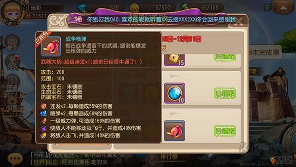 最后說一下大招,由于這里的力度和距離都是玩家手動操控的,不像彈彈堂有公式可以看,稍微遠(yuǎn)一點就全看手感了,所以在這里要做到彈彈堂的3線合一(散彈)或者TNT的9點合一(大招)是十分困難的,所以還是超級連發(fā)比較好用,競技刷副本也不沖突。