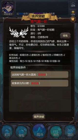 1、這是一款修真放置類游戲,游戲中你可以修煉,練氣,金丹,元嬰,成仙。