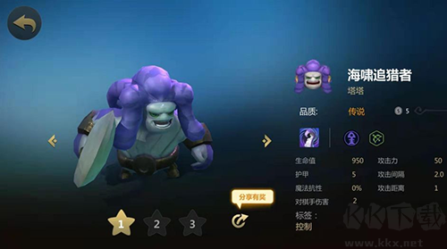 技能:凝視(使4格范圍內(nèi)面向自己的敵方棋子攻速降低20%,持續(xù)3秒,期間持續(xù)面向自己超過2秒的敵方棋子會(huì)被石化2秒。CD20秒)海妖是獵人陣容中前期的一個(gè)控制型棋子,技能范圍廣非常好用,但是1星的海妖回藍(lán)有點(diǎn)慢,如果有回藍(lán)裝不妨丟給她,2星后可以把她放在前排,追2星即可。