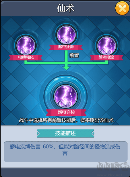 麟電疾縛:雷屬性彈射仙術,對書名怪物造成3段傷害。