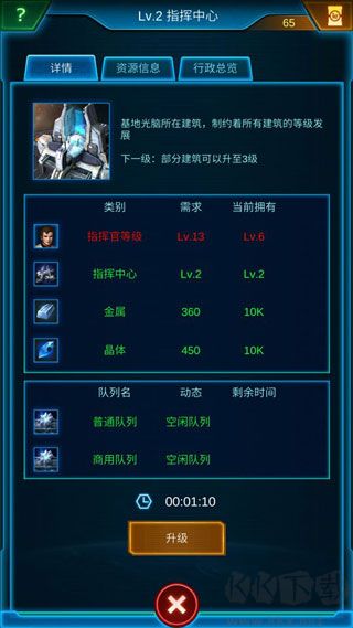 升級次序建議:指揮中心>研究中心>兵營>倉庫建筑>軍港>資源建筑>材料工廠