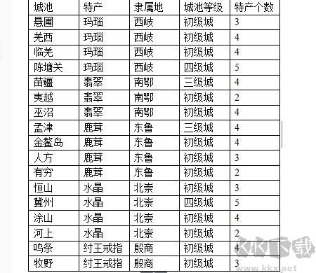 跑商必備城池(五級城和一兩個的城池不包括,城池的特產(chǎn)鋪也都是五級來計算):