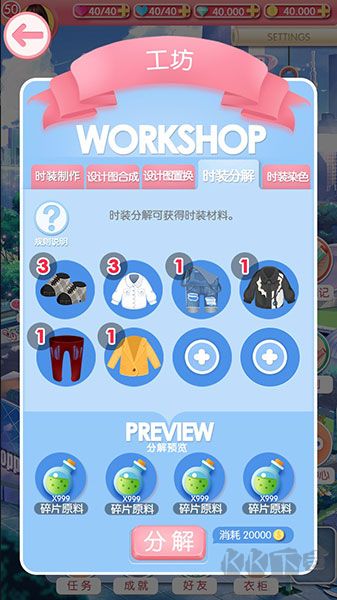 3、一次最多可以分解8種時裝。