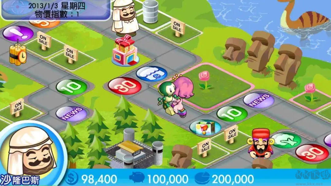 《大富翁4》是一款風靡一時的經(jīng)典休閑冒險棋游戲。游戲里一共有12個角色,6男6女;加上資料片.超時空之旅一共有8張地圖,供玩家選擇。這款游戲充滿了趣味和挑戰(zhàn)。熟悉的角色人物、原音呈現(xiàn)的對話,讓人備感親切。豐富的卡片道具,不僅可以讓玩家控制步數(shù)、強奪土地或現(xiàn)金、蓋屋拆屋、迎神送神、陷害對手,更能讓游戲變得千變?nèi)f化。