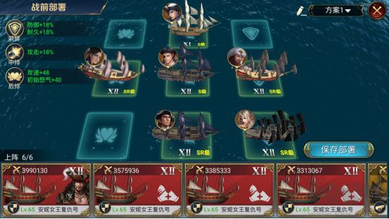 與pve不同,pvp開始后并不能再進(jìn)行部署,所以需要在船只界面中部署完畢之后再進(jìn)行挑戰(zhàn),部署時(shí),合理的陣容搭配和位置擺放尤為重要。船長(zhǎng)之間存在著克制關(guān)系,海軍克制海盜,海盜克制航海士,航海士克制海軍,傳說船長(zhǎng)不受任何克制,可以根據(jù)對(duì)方的船長(zhǎng)屬性調(diào)整自己的船長(zhǎng)配置。需要注意的是,攻擊船長(zhǎng)搭配攻擊船只,防御船長(zhǎng)搭配防御船只才能最大限度的提升戰(zhàn)斗力。而船只的擺放位置也有講究,第一排加防御而且會(huì)遭受敵方的集火適合放由防御船長(zhǎng)+防御船只+防御裝備組成的大肉盾,第二排加攻擊適合作為輸出位,而第三排加怒氣和攻速而且相對(duì)安全適合留給輔助。