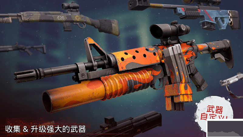 1、解鎖一個(gè)擁有強(qiáng)大武器及補(bǔ)給的軍火庫(kù),以幫助你生存。
