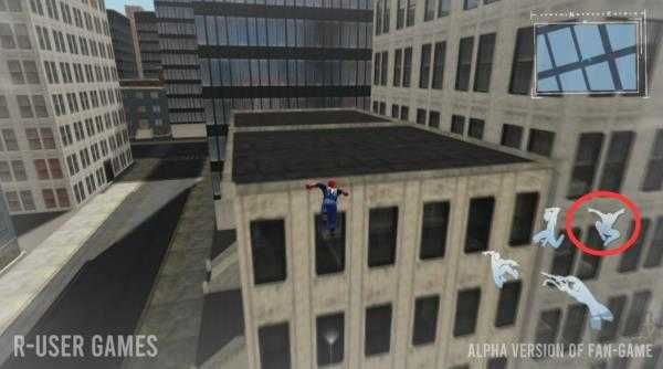 3.長按兩下如圖所示位置便可以吐出蛛絲,飛向附近的建筑物內(nèi)。