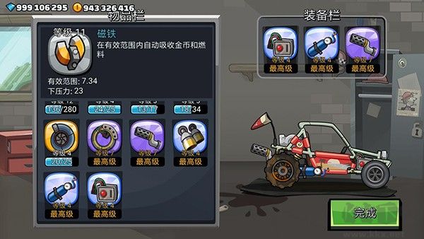 因為車輪子太小,部分地圖地形限制了它的速度!容易卡住!車容易解體,跑圖刷金幣,沒優(yōu)勢!下壓力并不是越大越好,有些圖,甚至不需要車下壓力!