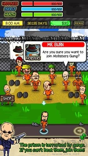 2、【社會關(guān)系】:廣交朋友,加入幫派,以增加你的防御,戰(zhàn)斗,當(dāng)然了,逃力量。不過要小心,囚犯你得罪了會打你了,甚至殺了你