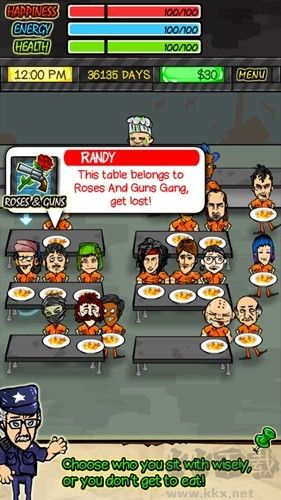3、社交關(guān)系:廣交朋友或加入幫派來提升您生存的機會!不過要小心,敵對囚犯會欺負,勒索你,如果冒犯了幫派他們甚至?xí)l(fā)出追殺令