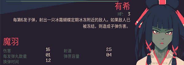 HP:3每第6發(fā)子彈,射出一只冰霜蝴蝶定期冰凍附近的敵人。如果敵人已被凍結(jié),則造成子彈傷害。