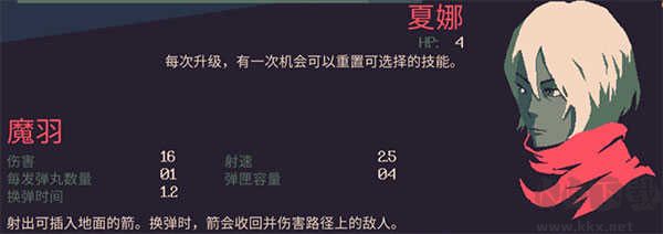 3.不屈意志--當(dāng)黛蒙德血量低于等于半血時(shí),子彈穿透+2,擊退+25%。