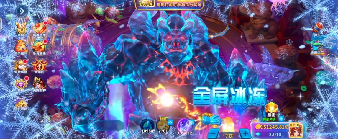 當(dāng)面臨魚群逃竄的緊急狀況或者面臨BOSS戰(zhàn)時,建議玩家迅速啟用冰凍,能夠在極短時間內(nèi)對目標(biāo)區(qū)域進(jìn)行凍結(jié),為玩家爭取更多的有效捕捉時間和擊殺強(qiáng)力BOSS。