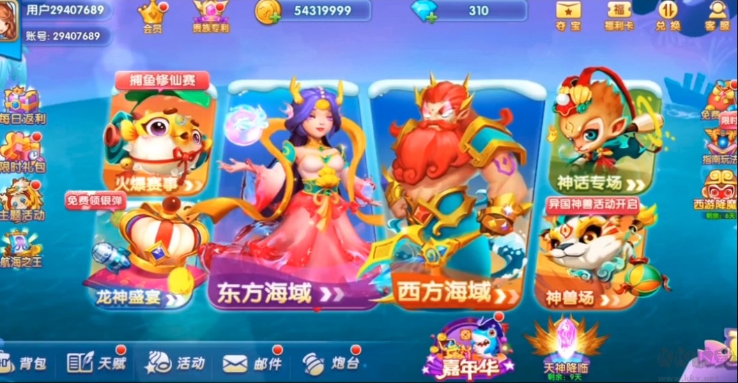 4、各漁場均設(shè)有專屬的特色玩法,多種海域漁場,競技玩法,為玩家?guī)聿町惢挠螒蝮w驗(yàn),游戲還特別推出抽獎活動,確保玩家在暢享游戲樂趣的同時,還能收獲實(shí)實(shí)在在的福利,實(shí)現(xiàn)游戲與獎勵的雙重滿足。
