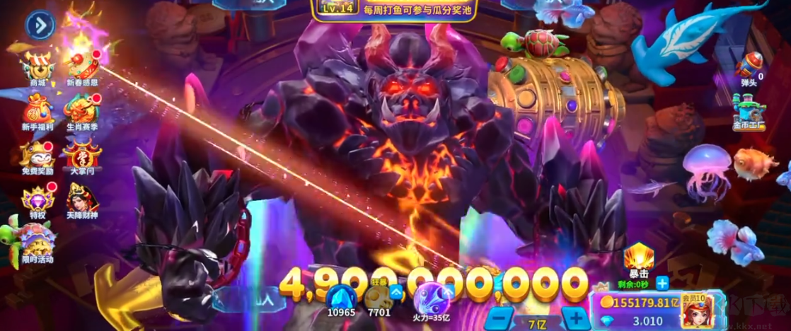 1、本游戲創(chuàng)新性地融入多元玩法,突破傳統(tǒng)捕魚模式的局限。玩家不僅能夠體驗(yàn)經(jīng)典的捕魚樂趣,更可靈活選用各類特制彈頭,在游戲中釋放強(qiáng)大威力,收獲極具沖擊力與暢爽感的爆炸體驗(yàn)。