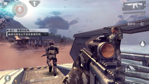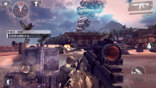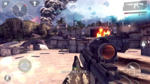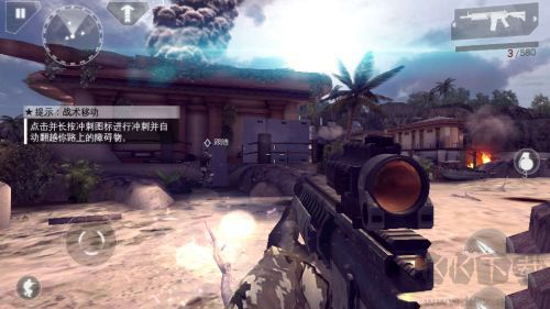 4、開(kāi)火射擊:說(shuō)實(shí)話(huà),現(xiàn)代戰(zhàn)爭(zhēng)4一開(kāi)場(chǎng)就讓玩家立馬進(jìn)入戰(zhàn)火紛飛,硝煙四起的戰(zhàn)場(chǎng)環(huán)境有點(diǎn)讓玩家目不暇接。我玩的時(shí)候還沒(méi)有搞清楚如何快速移動(dòng)就不得不跟隨戰(zhàn)友去攻擊敵人,因?yàn)椴粫?huì)使用掩體一直被敵人打中