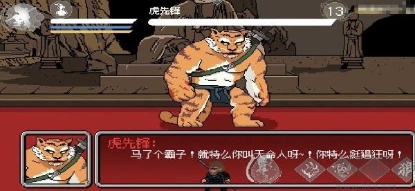 像素版中的虎先鋒同樣非常強(qiáng)大,上前就是一頓輸出。不但面目猙獰有如原作,也會(huì)快慢刀,勢大力沉,分分鐘干翻天命人。