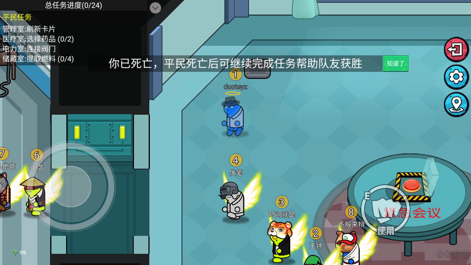 7、發(fā)現(xiàn)尸體后可以進(jìn)行報(bào)告,然后就會(huì)進(jìn)入到投票階段。