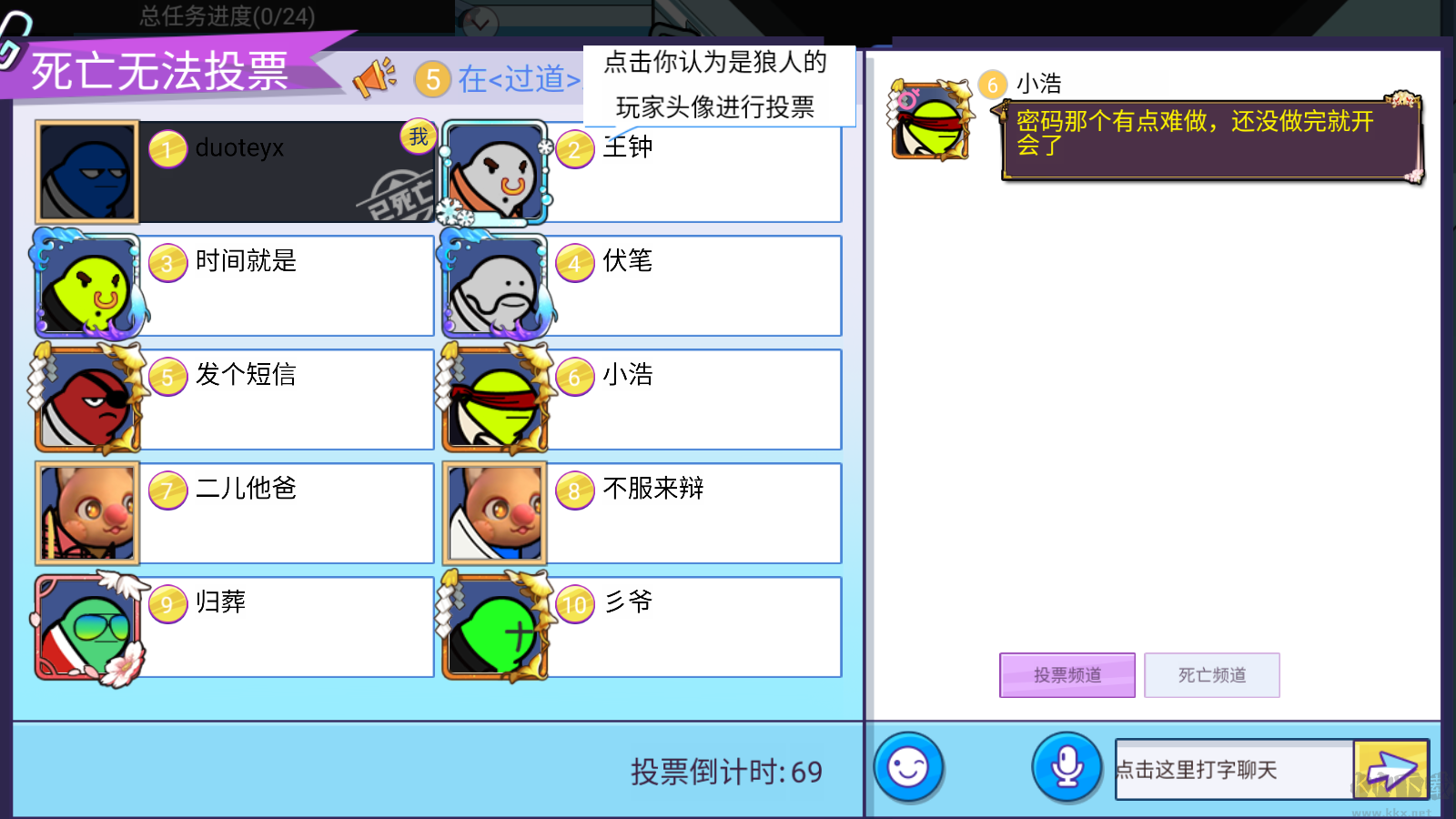 8、在這里可以進(jìn)行發(fā)言,然后投票投出你認(rèn)為是狼人的玩家。