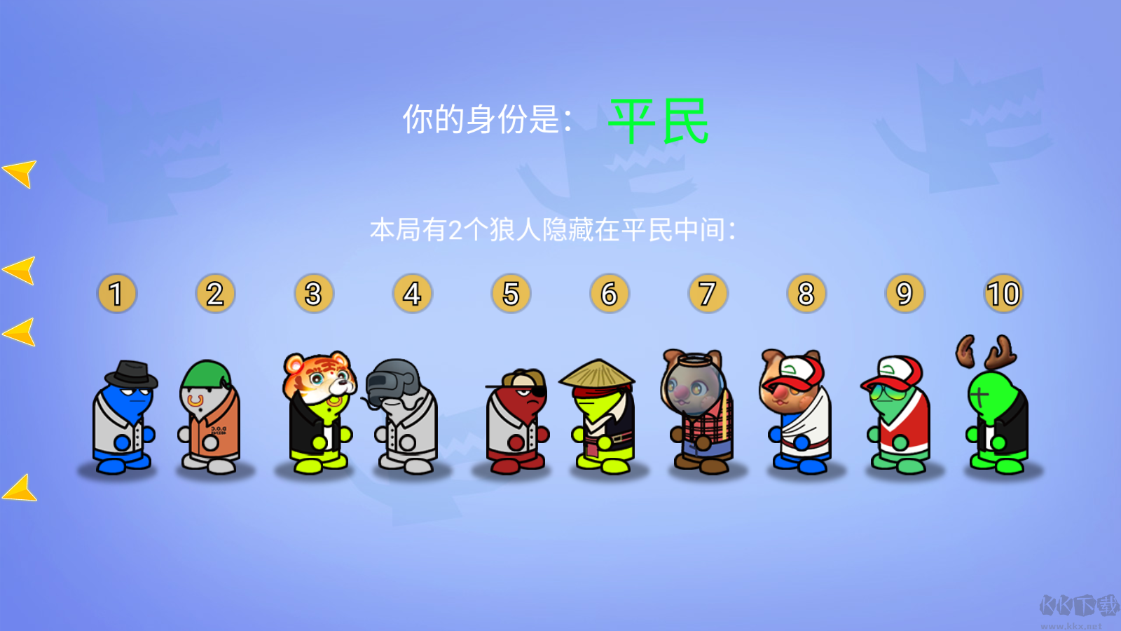 1.有多種身份,每個(gè)玩家都有自己的身份,整體分為平民和狼人陣營(yíng);