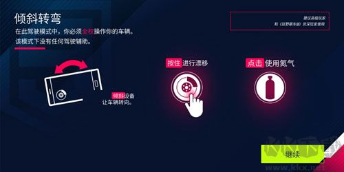 3.傾斜模式:依靠重力模式來控制車輛方向,按住為漂移,點擊為使用氮氣,非常的好理解。