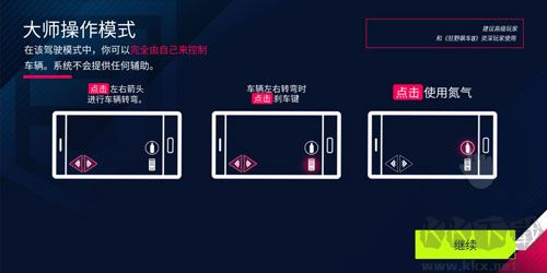 4.智能操作模式:算是中和了大師和傾斜兩種模式,沒必要移出什么的,這個模式本來就是給一些沒玩過這類型的游戲或是某飛車轉(zhuǎn)過來的玩家熟悉道路玩的,左右滑動來控制方向,點擊使用氮氣和漂移。