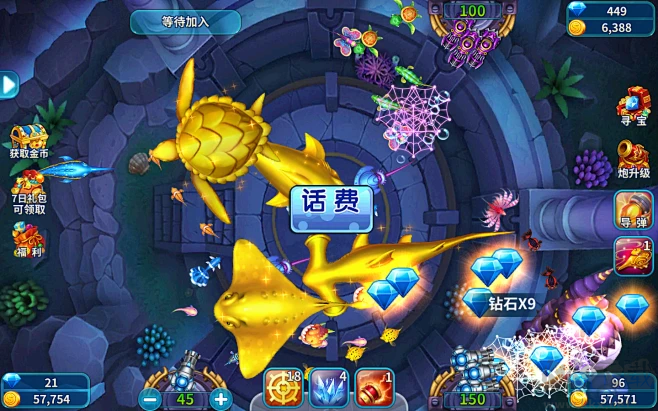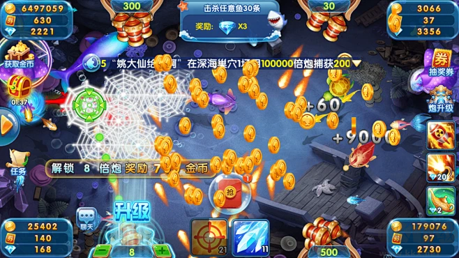 3、限時(shí)捕魚活動(dòng),參與活動(dòng)可獲得稀有道具和超高倍率炮彈。