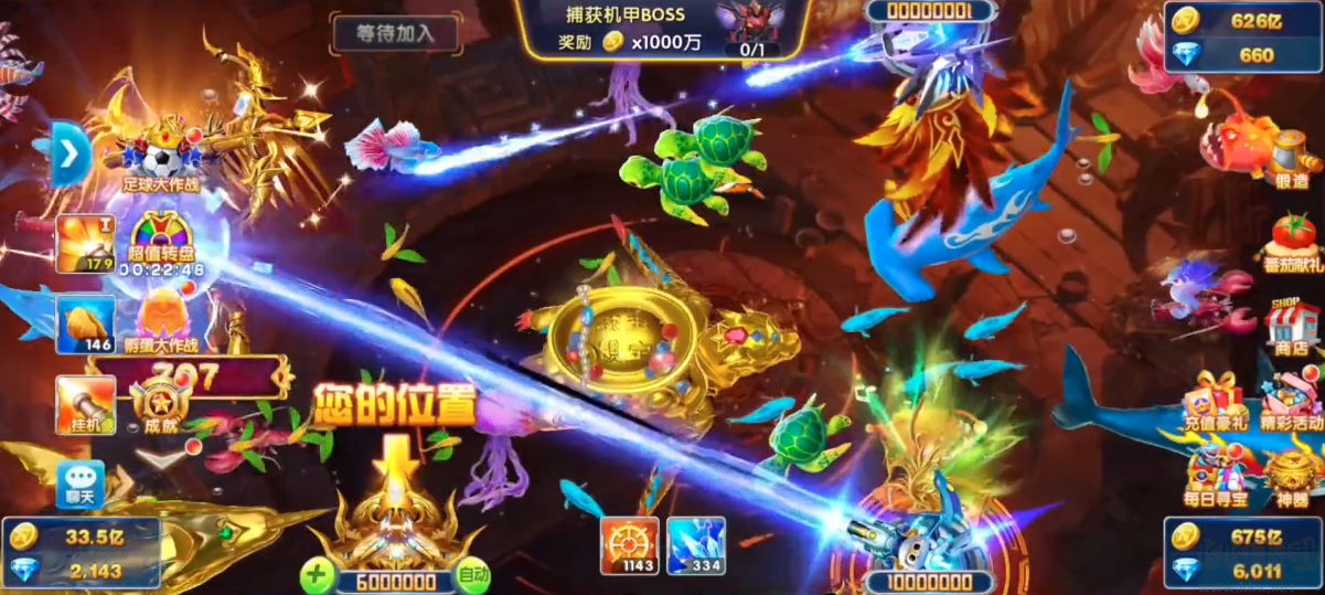2、全民捕魚歡樂升級,暢游深海征服魚群!