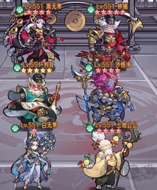 一號位:鐘馗;二號位:沙悟凈;三號位:土地公公;四號位:黑無常;五號位:判官/夜叉王;六號位:白無常。