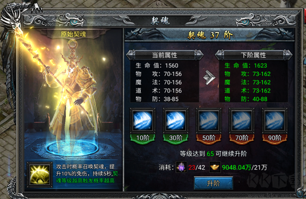 原始契魂:攻擊過程中,有概率召喚契魂,召喚成功后可使自身免傷提升 10%,該效果持續(xù) 5 秒。契魂等級越高,觸發(fā)此概率越高 。
