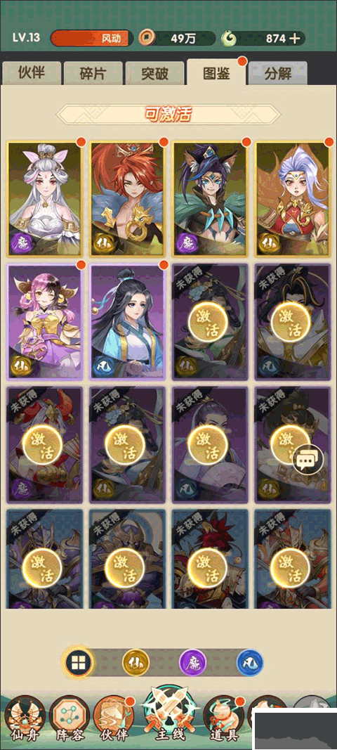 在伙伴界面即可找到圖鑒入口。在此界面,能夠激活已獲取的角色,激活后將獲得一定的全隊屬性加成。值得注意的是,無論激活的是何種品質(zhì)的伙伴,均可實現(xiàn)屬性提升,這無疑是一項極為實用的功能。