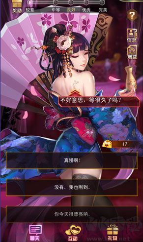 2.聊天功能:運(yùn)用您的智慧,根據(jù)對女神類型的判斷來回復(fù)其提出的問題。評論得分越高,所增加的好感度越高。與女神聊天需消耗親密卡,當(dāng)親密卡耗盡時(shí),請及時(shí)前往商城進(jìn)行補(bǔ)充。