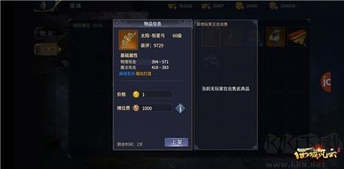 擺攤系統(tǒng)具備購買功能,自然也支持物品售賣。若您有出售某些道具的需求,點(diǎn)擊 “出售” 標(biāo)簽,系統(tǒng)將自動(dòng)篩選出可售物品,您從中選擇即可。每次擺攤的最長時(shí)長為 48 小時(shí)。在《風(fēng)云風(fēng)云》游戲中,所有未綁定物品均能在擺攤系統(tǒng)中進(jìn)行售賣,系統(tǒng)僅收取少量銅幣作為攤位費(fèi)用。既可以參考市場價(jià)格對(duì)道具進(jìn)行標(biāo)價(jià),也能夠根據(jù)自身想法隨意定價(jià)。倘若遇到經(jīng)濟(jì)實(shí)力雄厚且不介意價(jià)格的玩家,您便有機(jī)會(huì)獲取豐厚收益。
