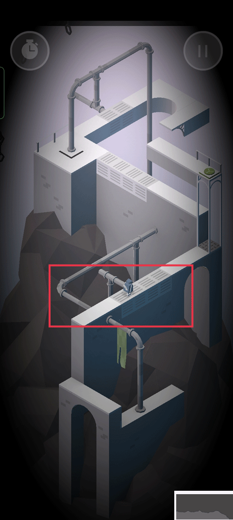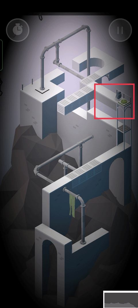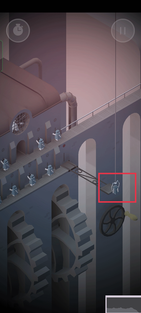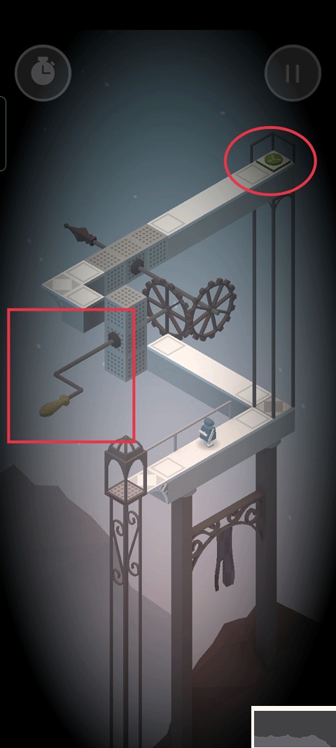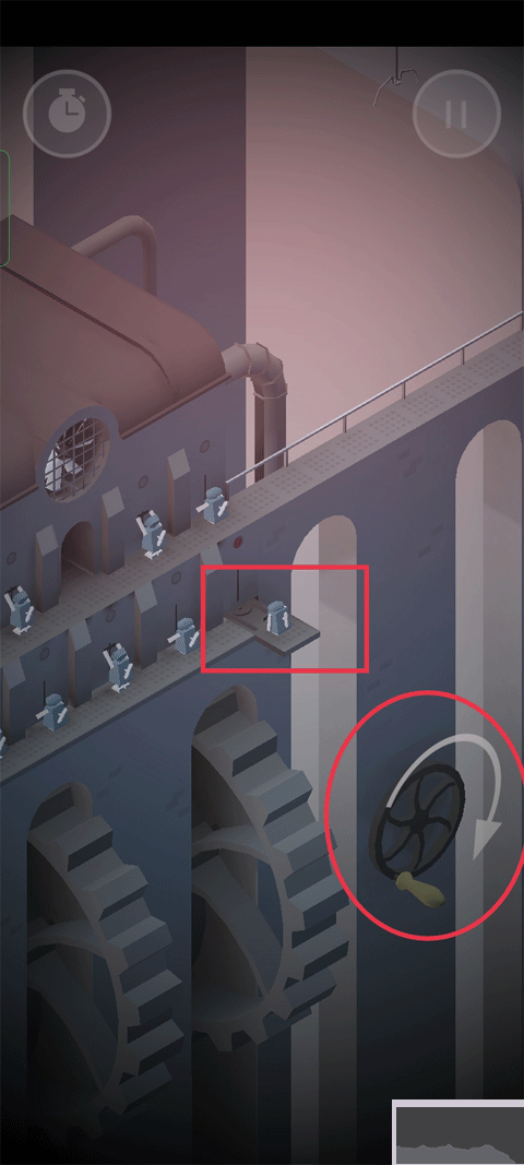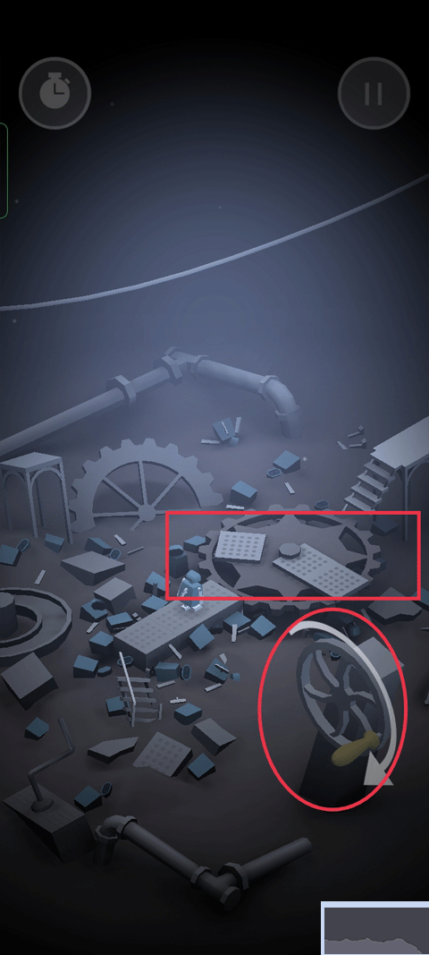 需選擇紅色邊框標(biāo)識的把手進(jìn)行轉(zhuǎn)動,以此鋪設(shè)供機(jī)器人持續(xù)行進(jìn)的路線,直至抵達(dá)綠色按鈕所在位置。