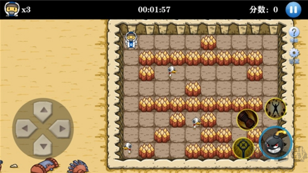 3、利用地形優(yōu)勢(shì):觀察關(guān)卡地形,借助墻壁、障礙物保護(hù)自己或增強(qiáng)炸彈威力。