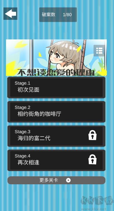 不想談戀愛的理由是一款畫風(fēng)特別搞怪的小游戲,游戲內(nèi)講的是一個女孩相親時遇到的各種事,這游戲不是簡單找茬,更像是做閱讀題,得按提示找相親對象的優(yōu)缺點,幫女生避開不好的相親對象,也讓男生知道得注意形象,難度不大,很好通關(guān),感興趣的小伙伴就快來kk網(wǎng)站下載體驗一下吧。