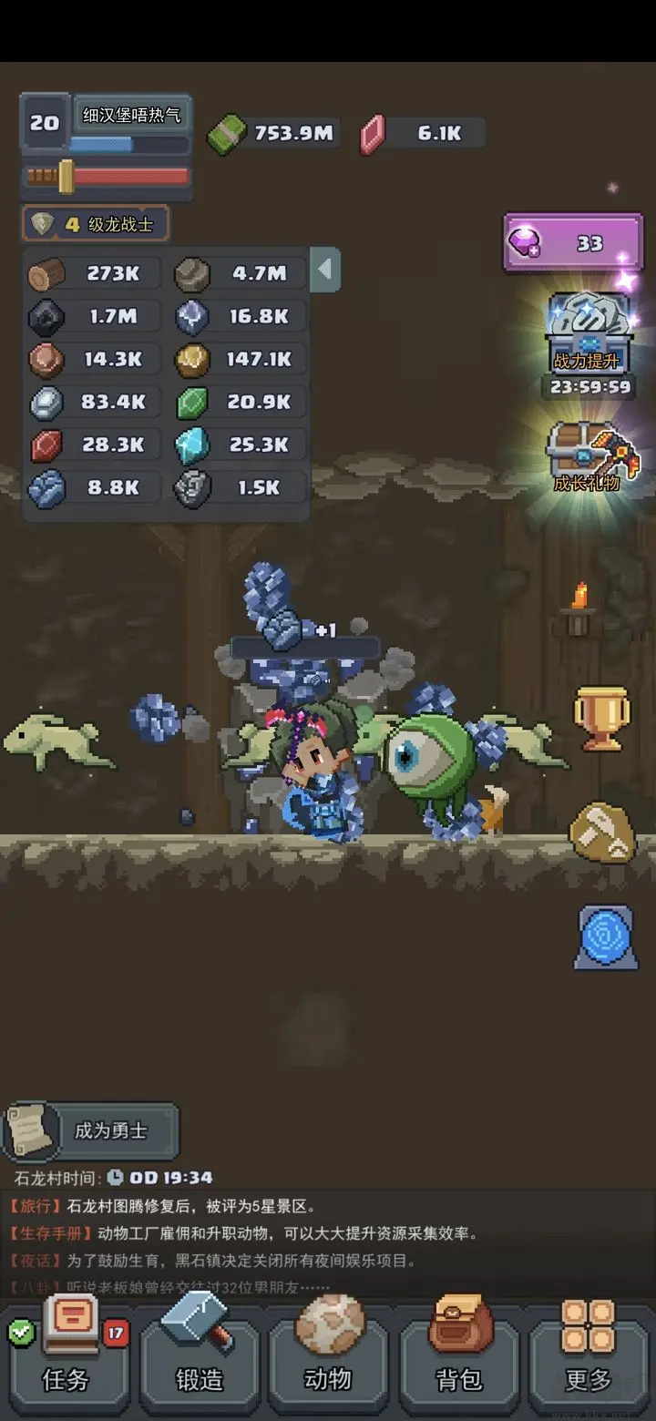 一個(gè)被魔物入侵的小村莊,一個(gè)等待拯救和建設(shè)的小世界。轉(zhuǎn)生來到石龍村,你救下老村長(zhǎng),成為了新的村長(zhǎng)。在廢棄礦洞里,那些為你打工挖礦的動(dòng)物們(蝸牛,螞蟻,野豬……)為尋寶藏,日日夜夜…地穴深處的巨龍,竟然會(huì)有厭世情緒?