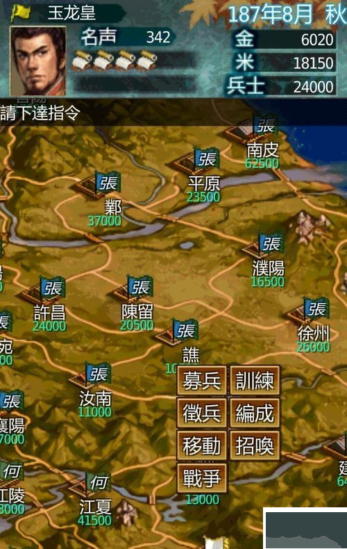 9、募兵工作需要投入資金以及少量的民眾忠誠(chéng)度。征兵則需大量的民眾忠誠(chéng)度支持。在招募武將時(shí),應(yīng)著重選拔武力值高且勇名卓著者,招募數(shù)量越多越佳。關(guān)于武將調(diào)動(dòng),可將本城武將調(diào)至其他城池進(jìn)行招募,反之亦然。軍事訓(xùn)練有助于提升軍隊(duì)?wèi)?zhàn)斗力。而編成環(huán)節(jié)能夠?yàn)槲鋵⒀a(bǔ)充兵員。