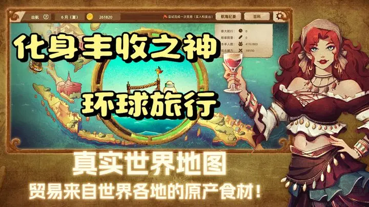 核心玩法是大航海,開(kāi)船拉貨各地游走進(jìn)行低買(mǎi)高賣(mài)的商人基本操作。主角給設(shè)定成豐收神實(shí)習(xí)生(替班),比較關(guān)注人們的飲食習(xí)慣。由劇情進(jìn)行推進(jìn),有比較完整的新手引導(dǎo),大部分功能都介紹到了,都是點(diǎn)擊操作,理解上手并不難。