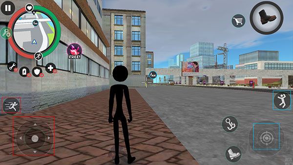 游戲界面左側(cè)設(shè)有移動與加速功能按鍵,右側(cè)則分別有繩索、攻擊(跳躍)、跳躍按鍵,以及位于右上側(cè)的武器更換按鍵。同時(shí),血量、經(jīng)驗(yàn)的顯示會實(shí)時(shí)更新,一目了然??蓱{借自由的玩法,與其他幫派人物展開交火。在戰(zhàn)斗過程中,擊殺敵人可獲取經(jīng)驗(yàn)值,隨著擊殺數(shù)量增多會產(chǎn)生星級。星級提升后,巡警及其他附近角色會重點(diǎn)關(guān)注并對你發(fā)起猛烈攻擊。在此過程中,如何生存以及如何擊殺其他角色,便是需要完成的任務(wù)。