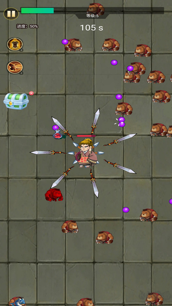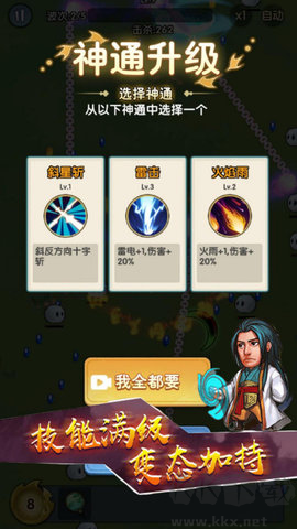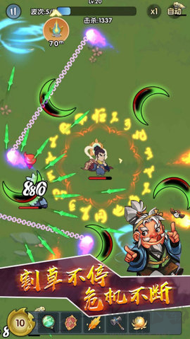 1、獨(dú)特的轉(zhuǎn)刀割草玩法:玩家可以通過控制鳩摩大俠的旋轉(zhuǎn)飛刀,輕松割草并享受連擊快感,實(shí)現(xiàn)高效的清怪體驗(yàn)。