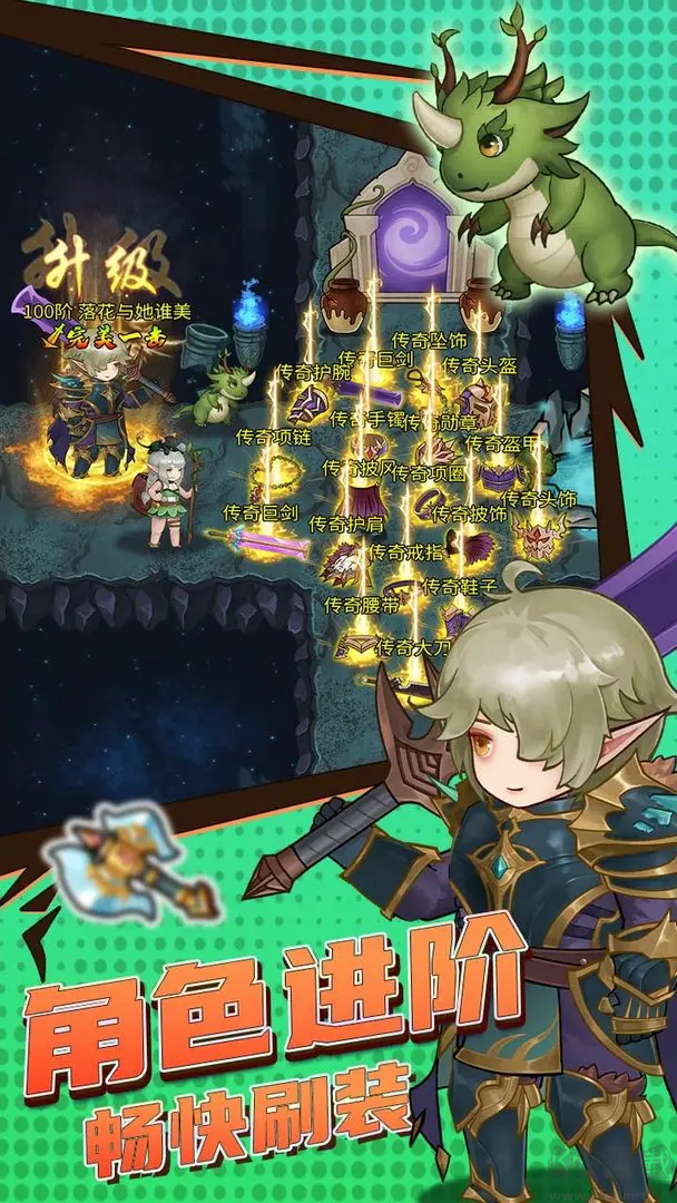 2、隨機(jī)生成的地下城中與怪物戰(zhàn)斗,獲取裝備,挑戰(zhàn)終極boss。游戲包含豐富的裝備、寵物、伙伴系統(tǒng),并提供競(jìng)技場(chǎng)和獨(dú)特的副本玩法