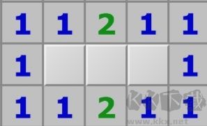 7、側(cè)邊(右上角)的 “1” 表明其周邊僅有一枚地雷;下方的 “1” 則意味著新增加的三個(gè)方格內(nèi)不存在地雷,可安心點(diǎn)擊 。