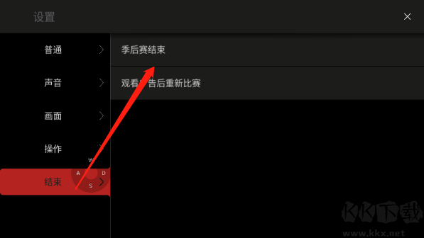 2、在設(shè)置選項中,點擊 “結(jié)束”,進(jìn)而選擇 “季后賽結(jié)束”